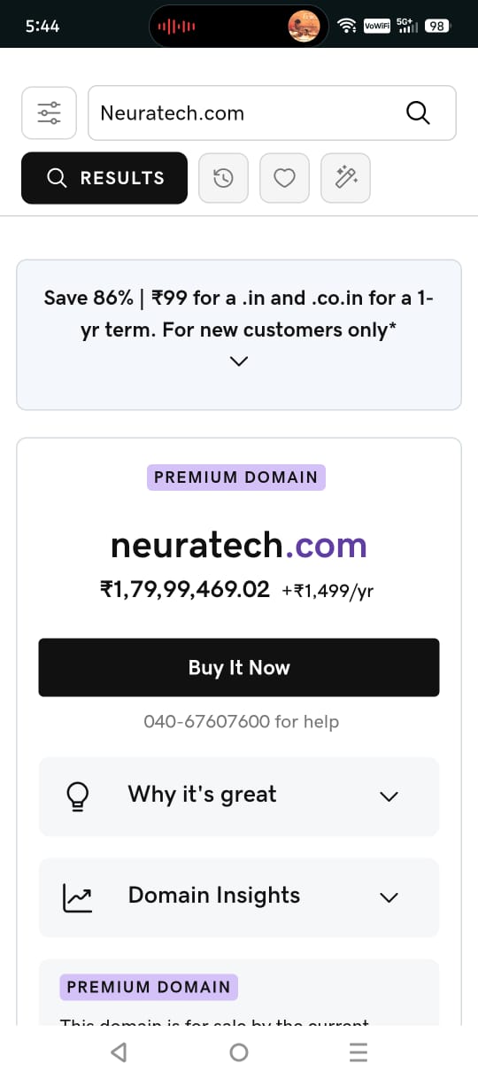If you are here and wish to purchase this domain, long story short www.neuratechcorp.com is not for sale but www.neuratech.com is.